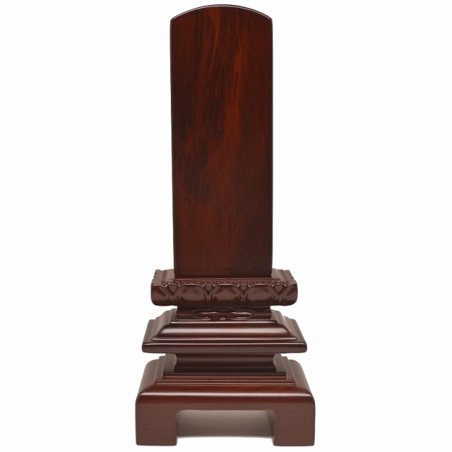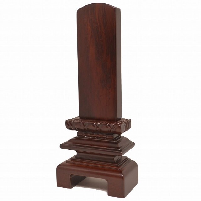 丸みのあるデザインに上品さのある花を添えた台座を使用したデザイン性の高いお位牌になります。